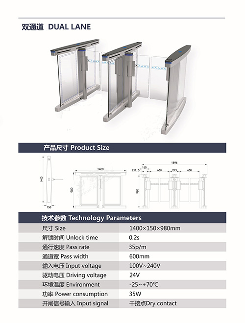 速通門系統(tǒng)紅外防夾功能,速通門B323A在擺臂復(fù)位的過程中紅外檢測(cè)到人在通道中,擺臂會(huì)自動(dòng)回到打開狀態(tài)。